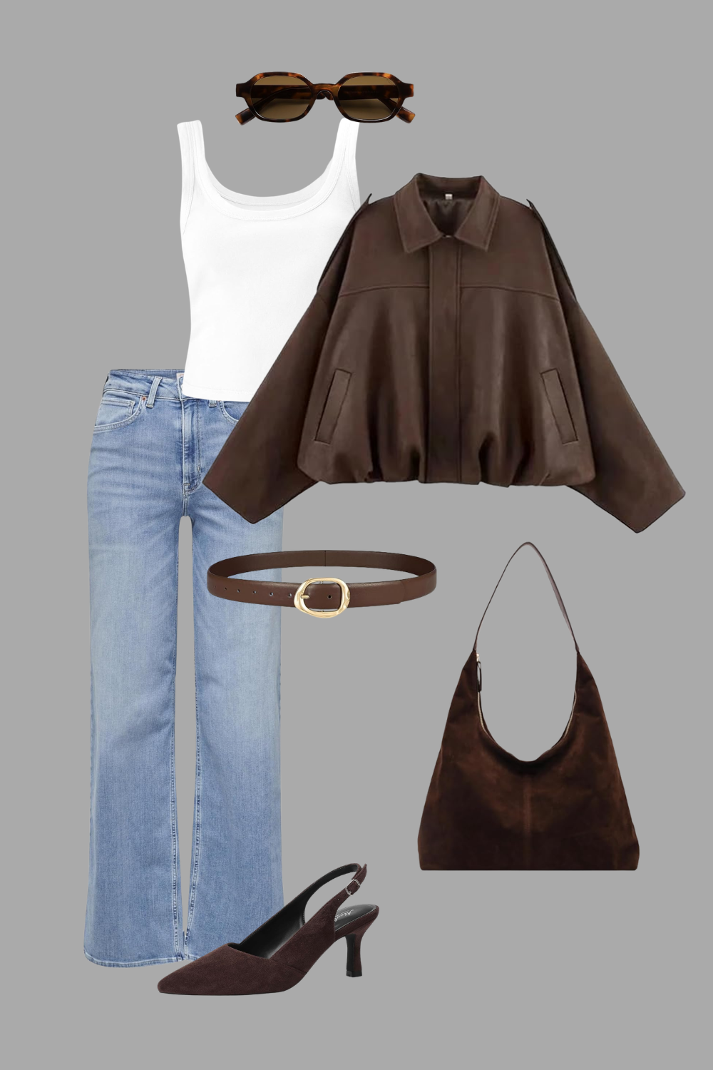 This outfit is the perfect balance between polished and relaxed, making it ideal for everyday spring plans like brunch dates, city strolls, shopping trips, or casual meetings. The brown suede jacket adds warmth and texture, while the classic jeans and crisp white top keep the look fresh and effortless. Paired with heels and refined accessories, it instantly feels more elevated, which is why it works so well when you want to look put-together without sacrificing comfort.